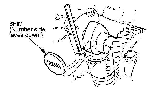 13. Insert the correct shim, number side down, into the tappet. Make sure the shim is fully seated.