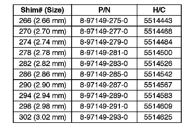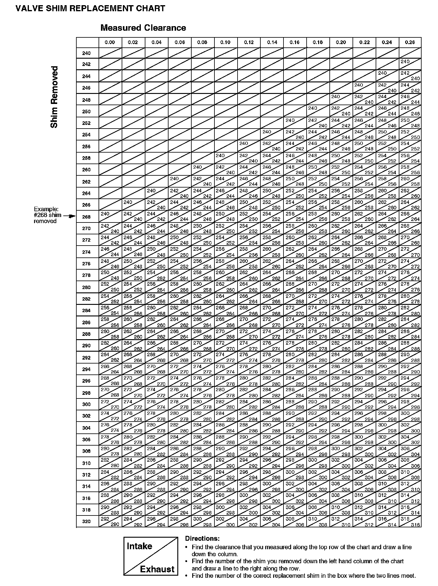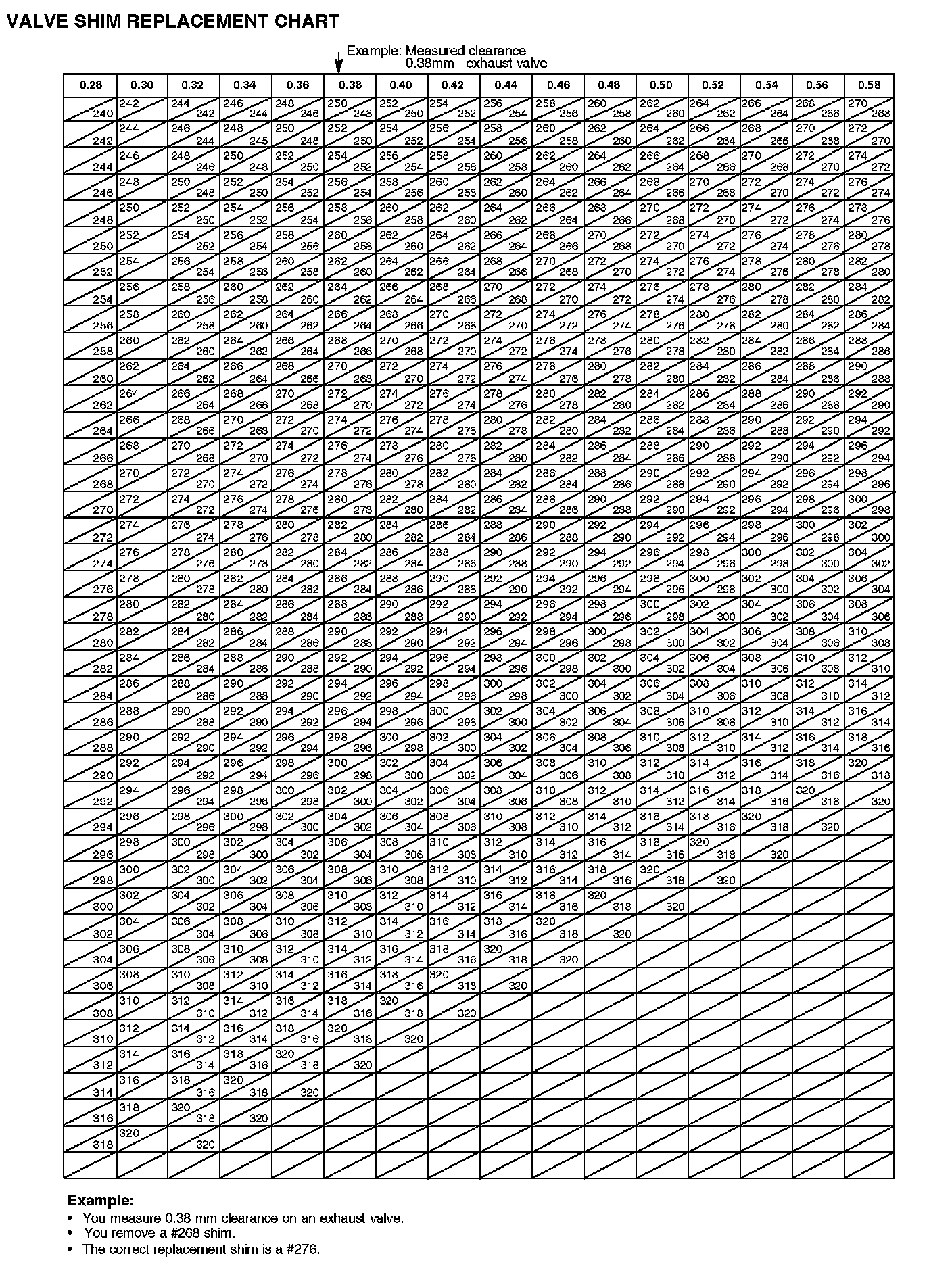 Valve Shim Replacement Chart