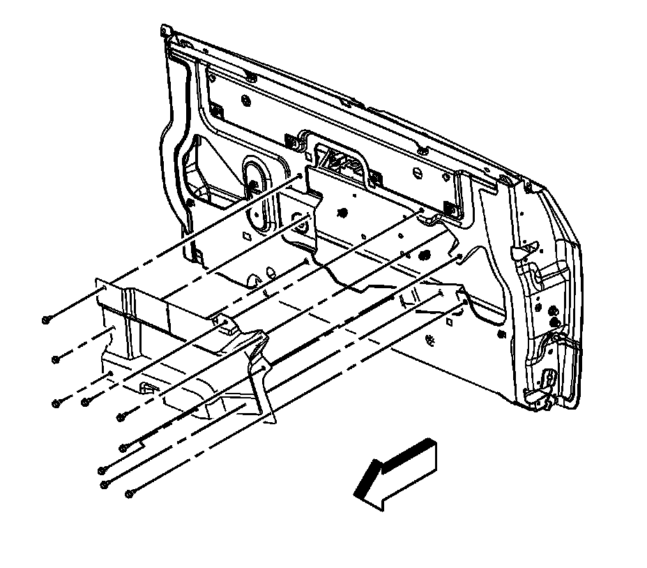 3. Remove the bolts retaining the end gate inner reinforcement panel to the end gate.