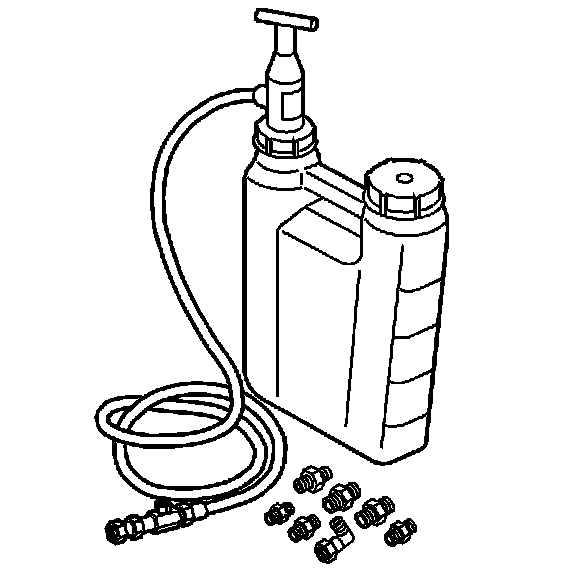 5. Pump the handle on J 45299 to flow a minimum of 1-2 quarts of engine oil. Observe the flow of engine oil through the flexible hose and into the engine assembly.