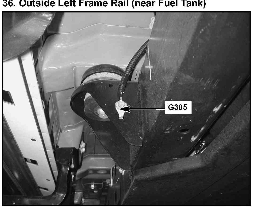 36. Outside Left Frame Rail (near Fuel Tank):