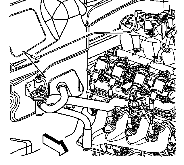 9. Install the heater water shutoff valve actuator inlet hose to the intake manifold.