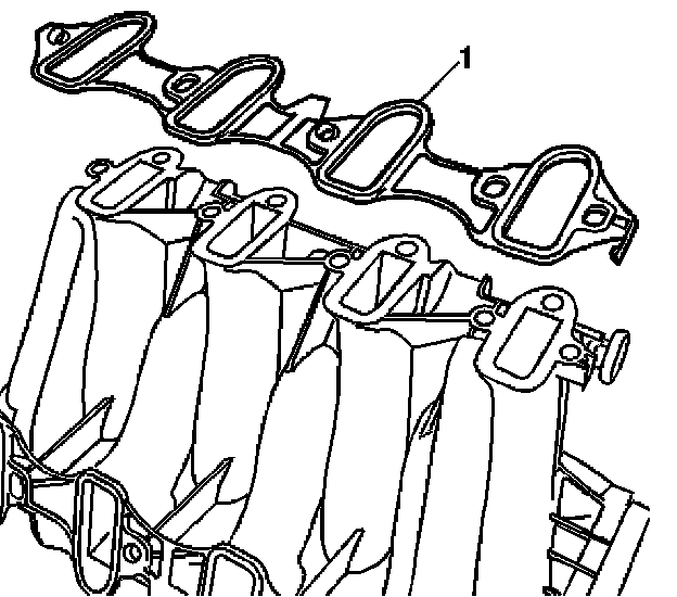 1. Install NEW intake manifold gaskets (1) to the intake manifold.
