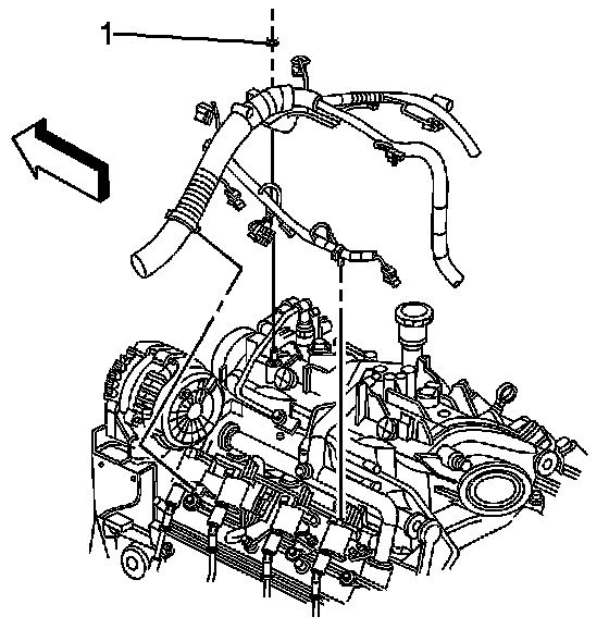 6. Install the engine harness bracket nut (1).