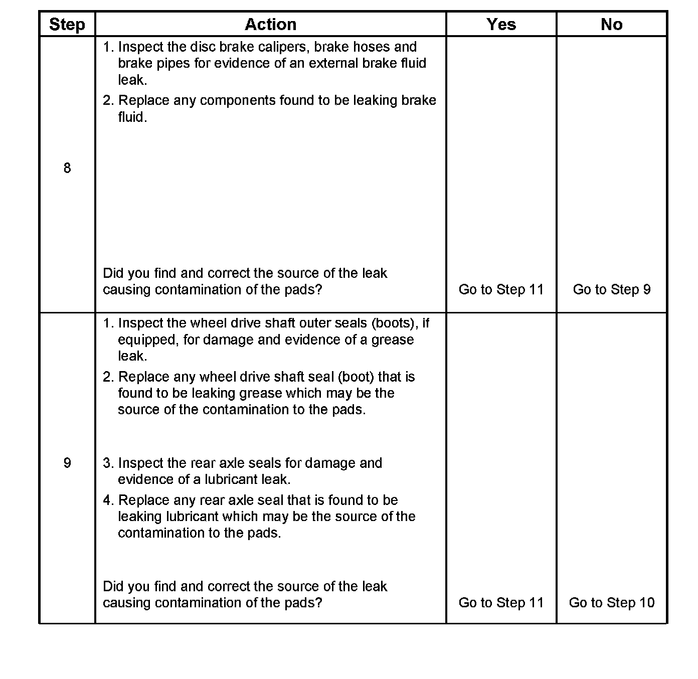 9. Lubricant leaks from non-brake system components may come in contact with and contaminate brake system components.