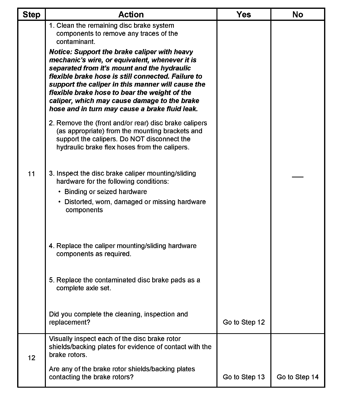 12. Disc brake rotor shields/backing plates that come in contact with disc brake rotors may cause brake system noise.
