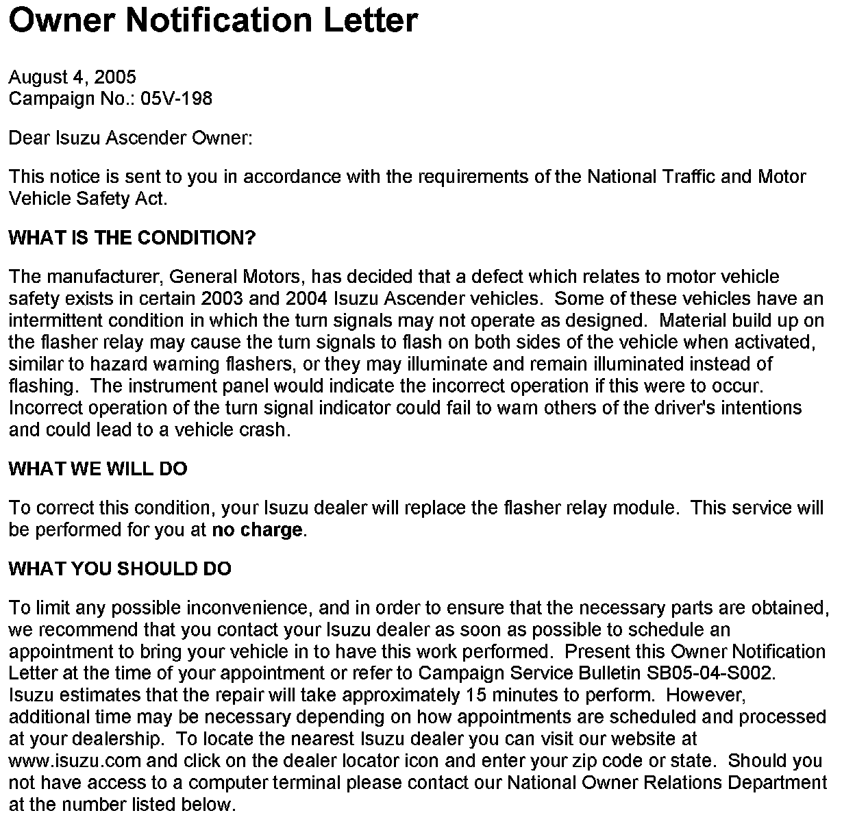 Recall - Flasher Relay Module Replacement