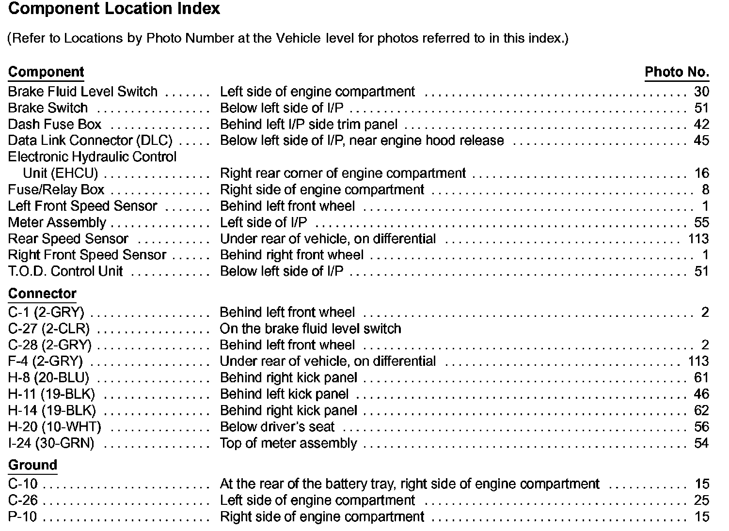 Antilock Brakes / Traction Control Systems: Locations