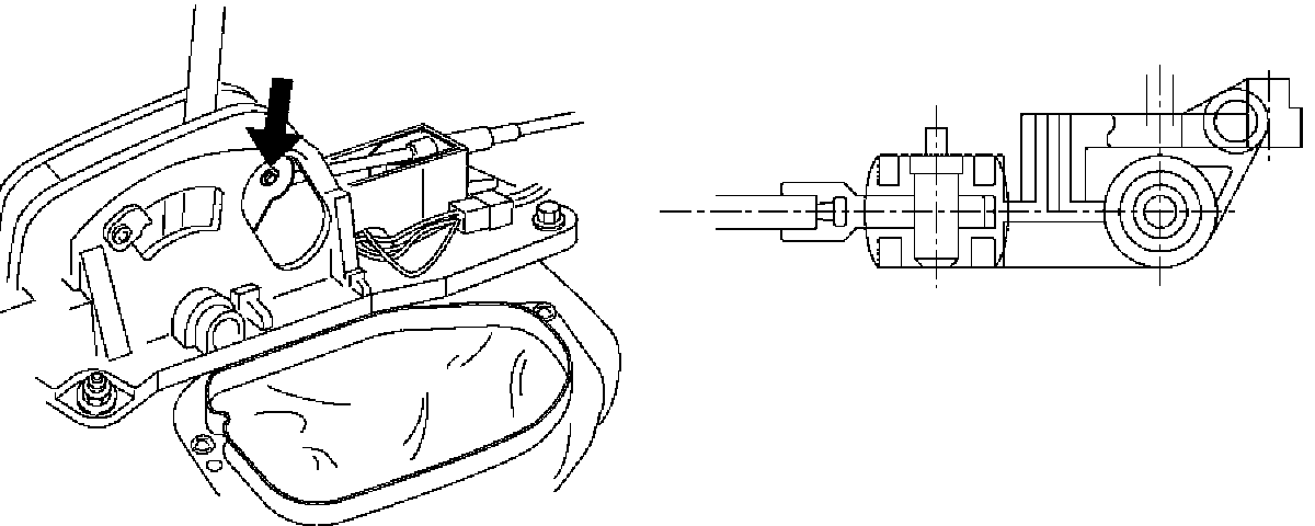 4. Set inner cable end in selector lever and push pin into selector lever hole and inner cable end.