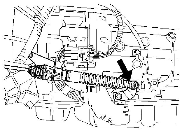 6. Connect adjust end fitting attachment to the bracket on transmission.