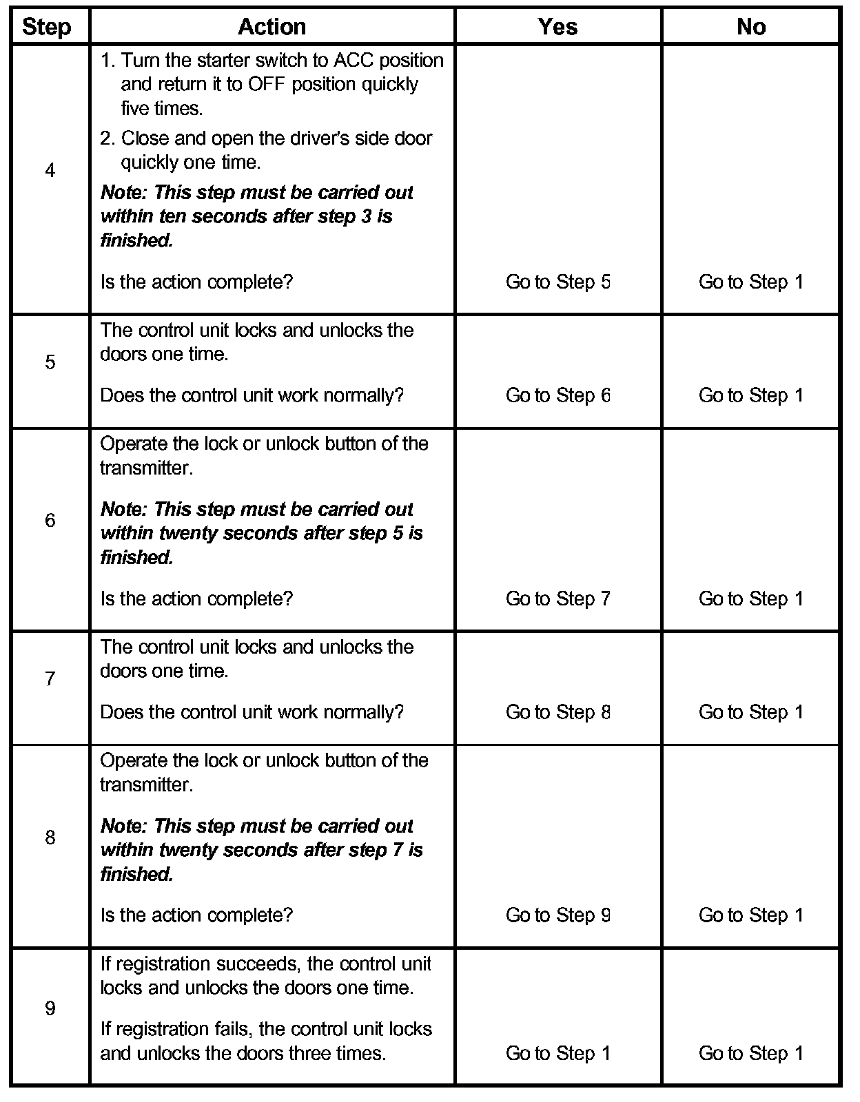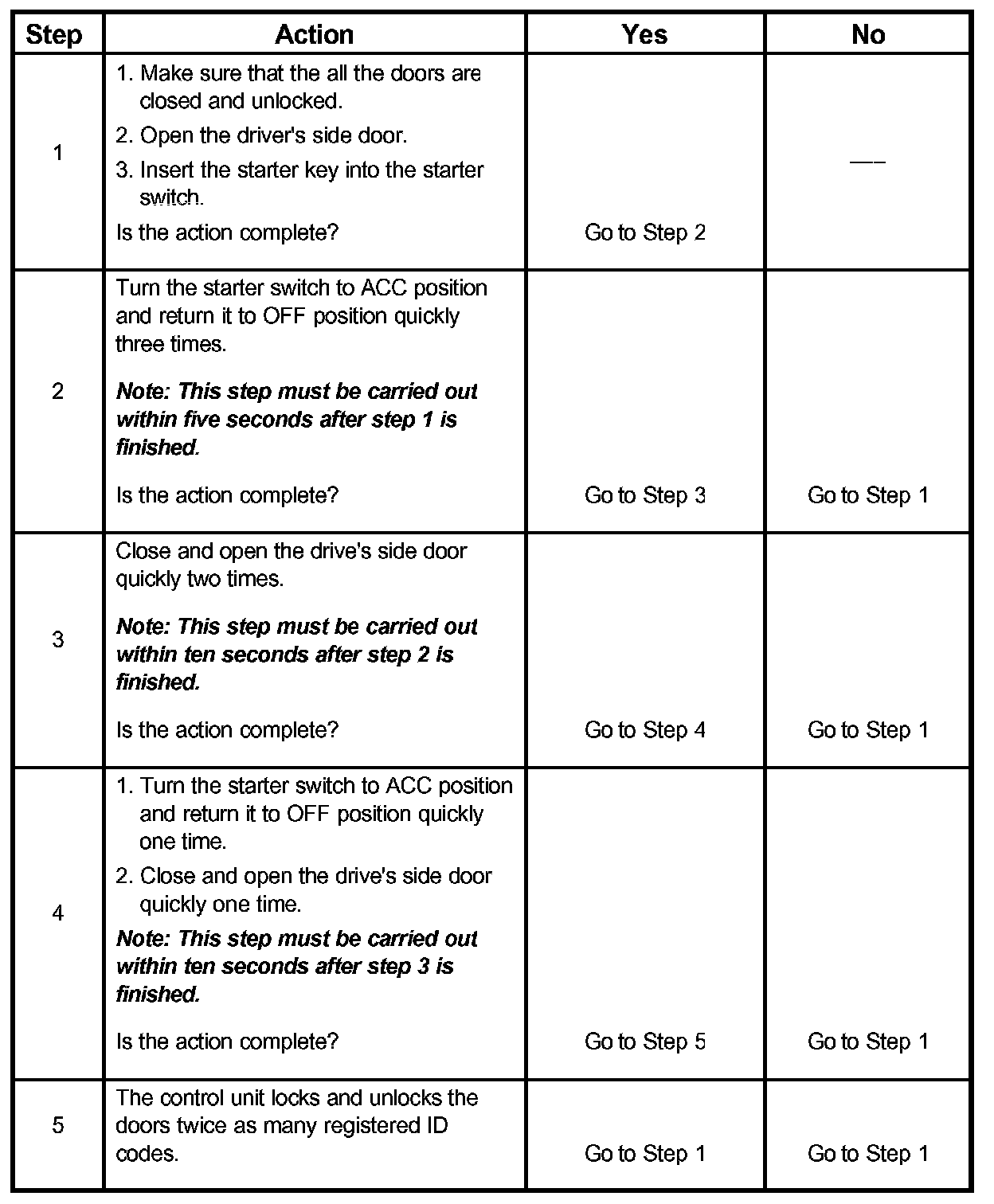 ID Code RegistrationThe following procedures are available to register keyless entry ID codes.