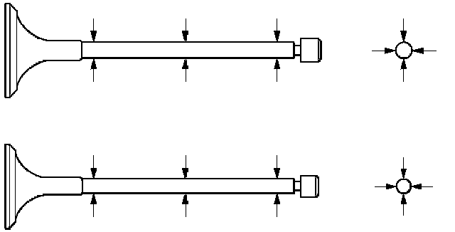 1. Measure the valve stem diameter with a micrometer. If the valve stem diameter is less than the specified limit, the valve and the valve guide must be replaced as a set.