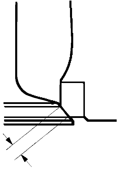 2. Use a valve cutter to minimize scratches and other rough areas. This will bring the contact width back to the standard value. Remove only the scratches and rough areas. Do not cut away too much. Take care not to cut away unblemished areas of the valve seat surface.