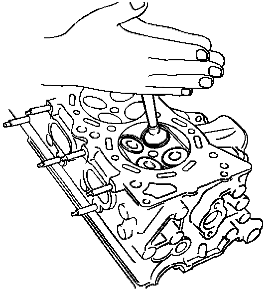 3. Install valve to valve guide. Before installing valve guide apply engine oil to the outside of the valve stem.