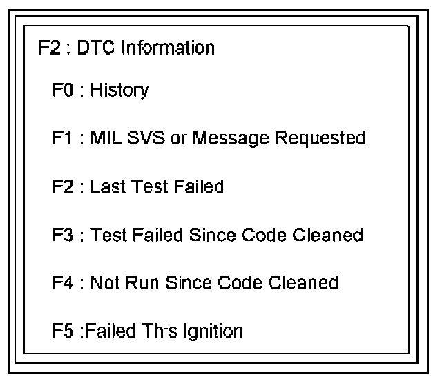 DTC Information ModeUse the DTC info mode to search for a specific type of stored DTC information. There are six choices. The service manual may instruct the technician to test for DTCs in a certain manner. Always follow published service procedures.