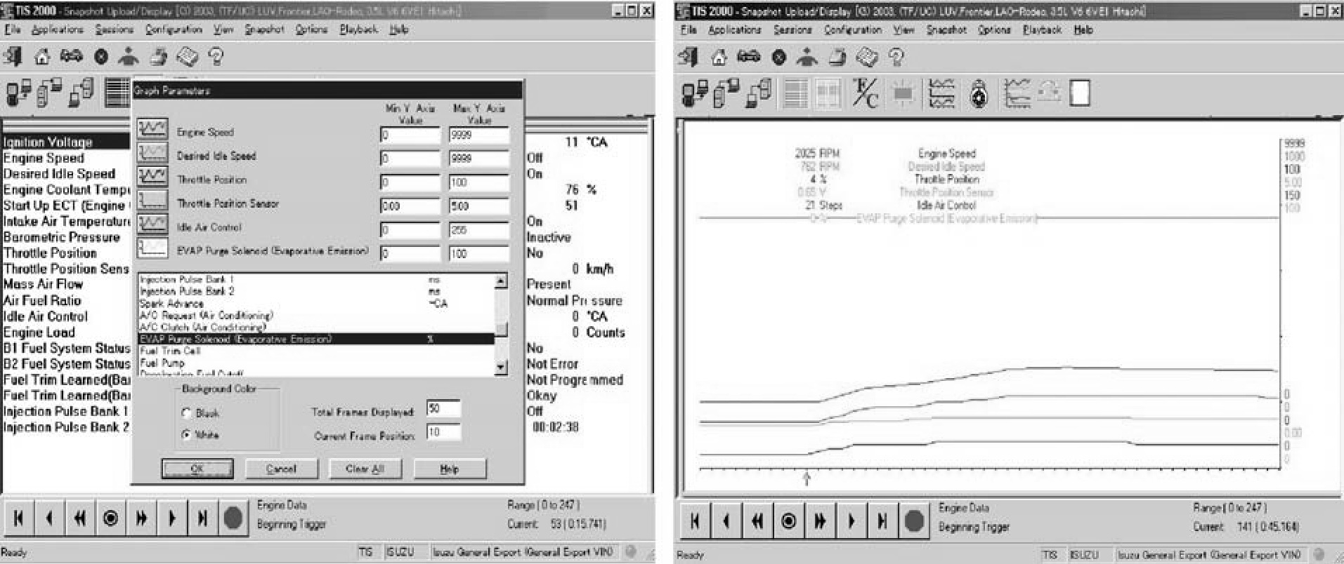 Display Of Graphs On One Screen (Max. 6 graphs):1. Click the 6 graph icon. "Graph Parameter" window opens.