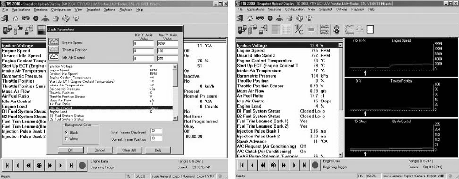 Graph Display Values and Graphs (Max. 3 graphs):1. Click the icon for graph display. "Graph Parameter" window opens.