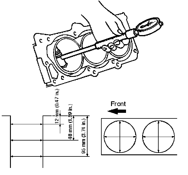 Use a cylinder gauge to measure the cylinder bore diameter in both the axial and thrust directions. Each measurement should be made at six points.