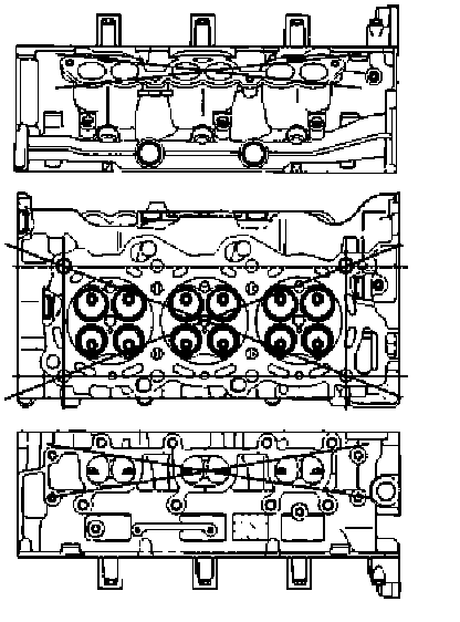 Inspect cylinder head deck, common chamber and exhaust manifold mating surfaces for flatness. These surfaces may be reconditioned by milling. If the surfaces are "out of flat" with "round" by more than specification, the surface should be ground to within specifications. Replace the head if it requires machining beyond the repairable limit.
