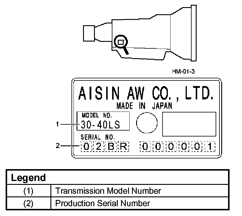 The identification plate is located on the right rear side of the transmission.