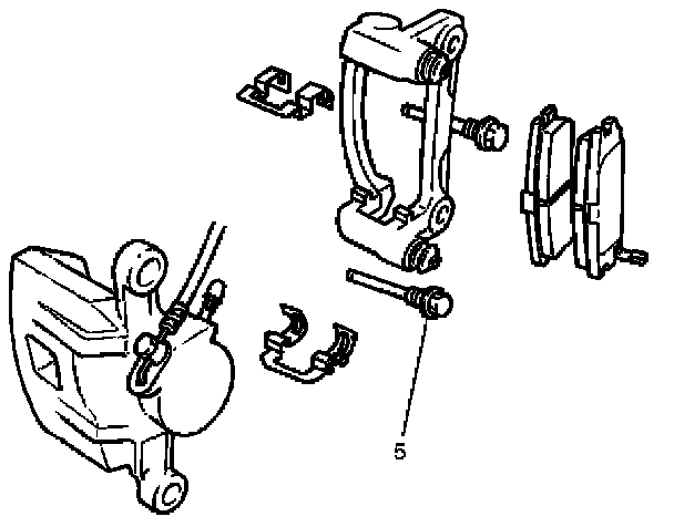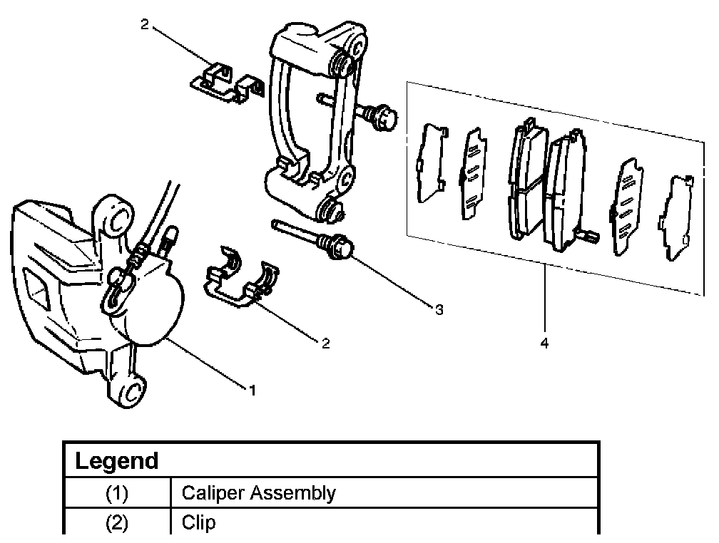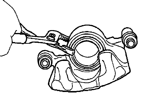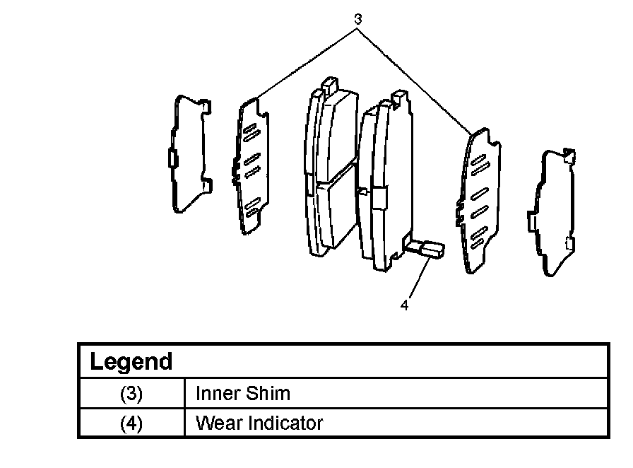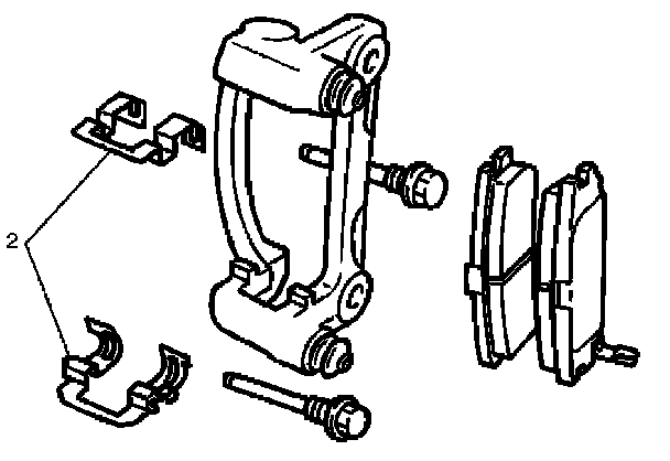 Note: If a squealing noise occurs from the rear brake while driving, check the pad wear indicator plate. If the indicator plate contacts the rotor, the disc pad assembly should be replaced.