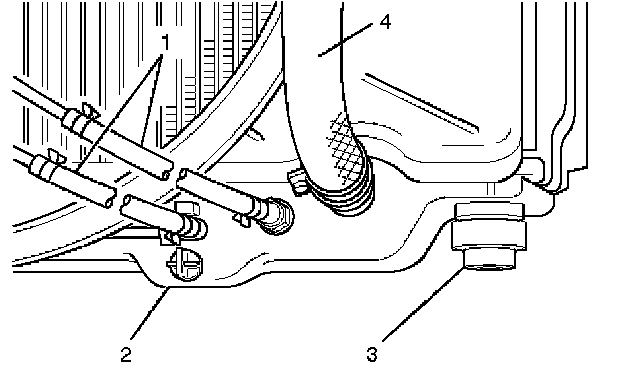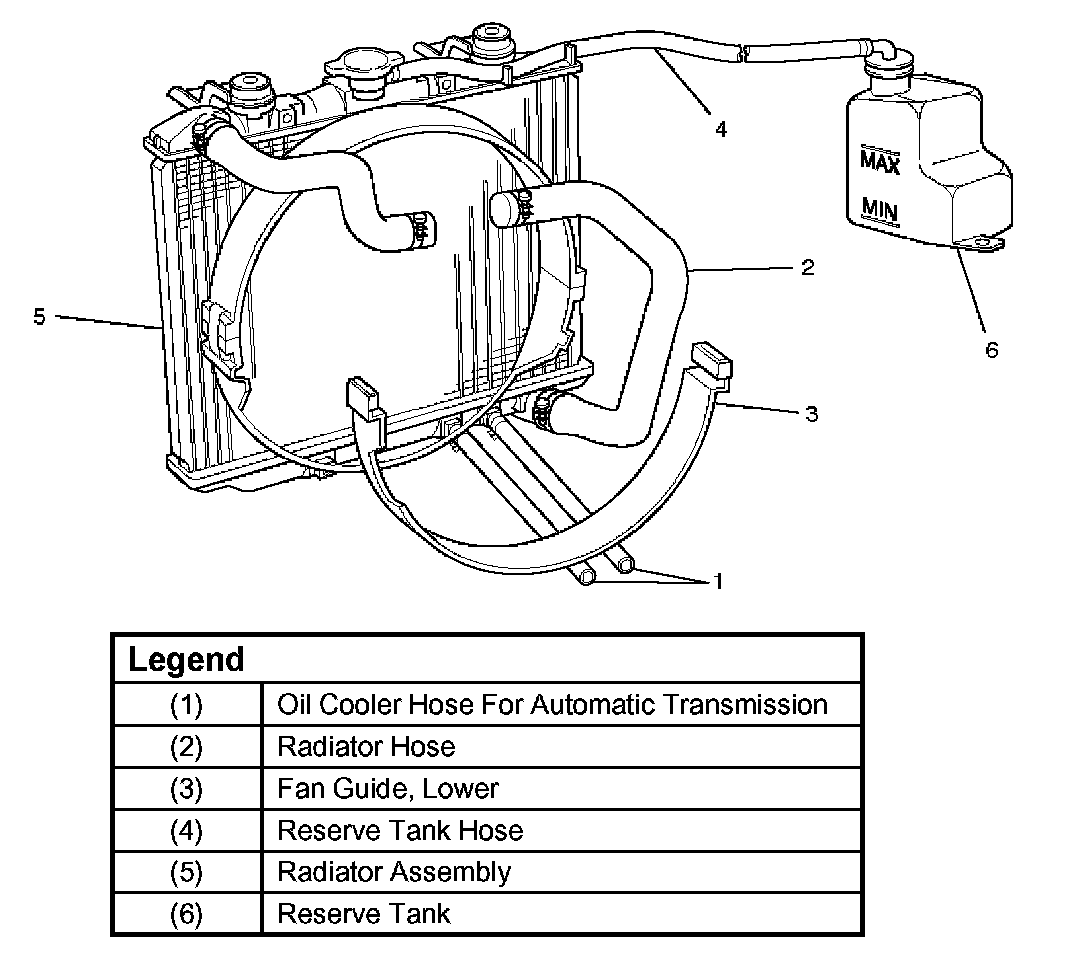 6. Disconnect the reserve tank hose (4) from radiator.