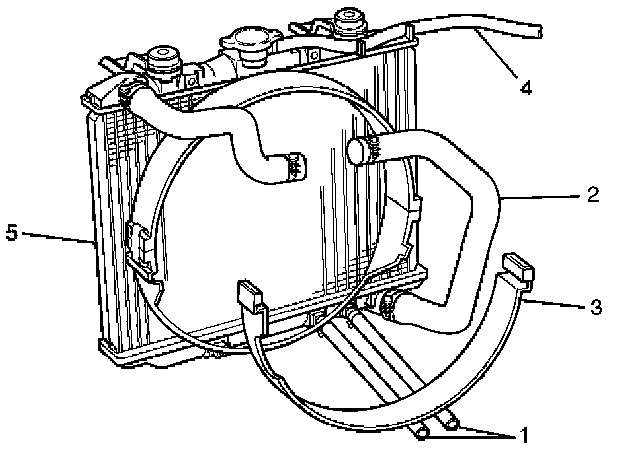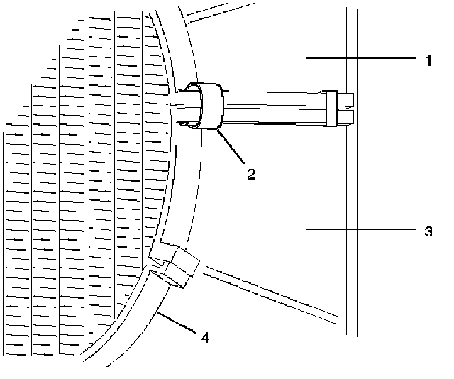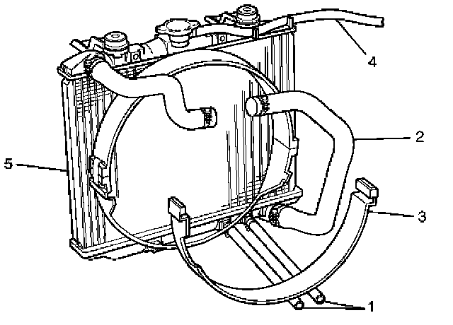 2. Install radiator assembly with hose, taking care not to damage the radiator core with a fan blade.
