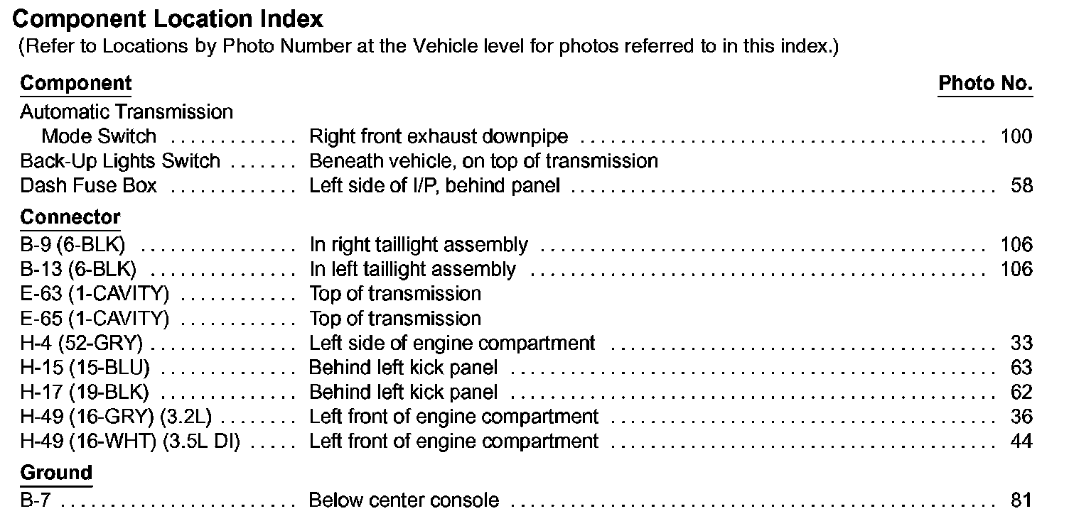 Backup Lamp: Locations