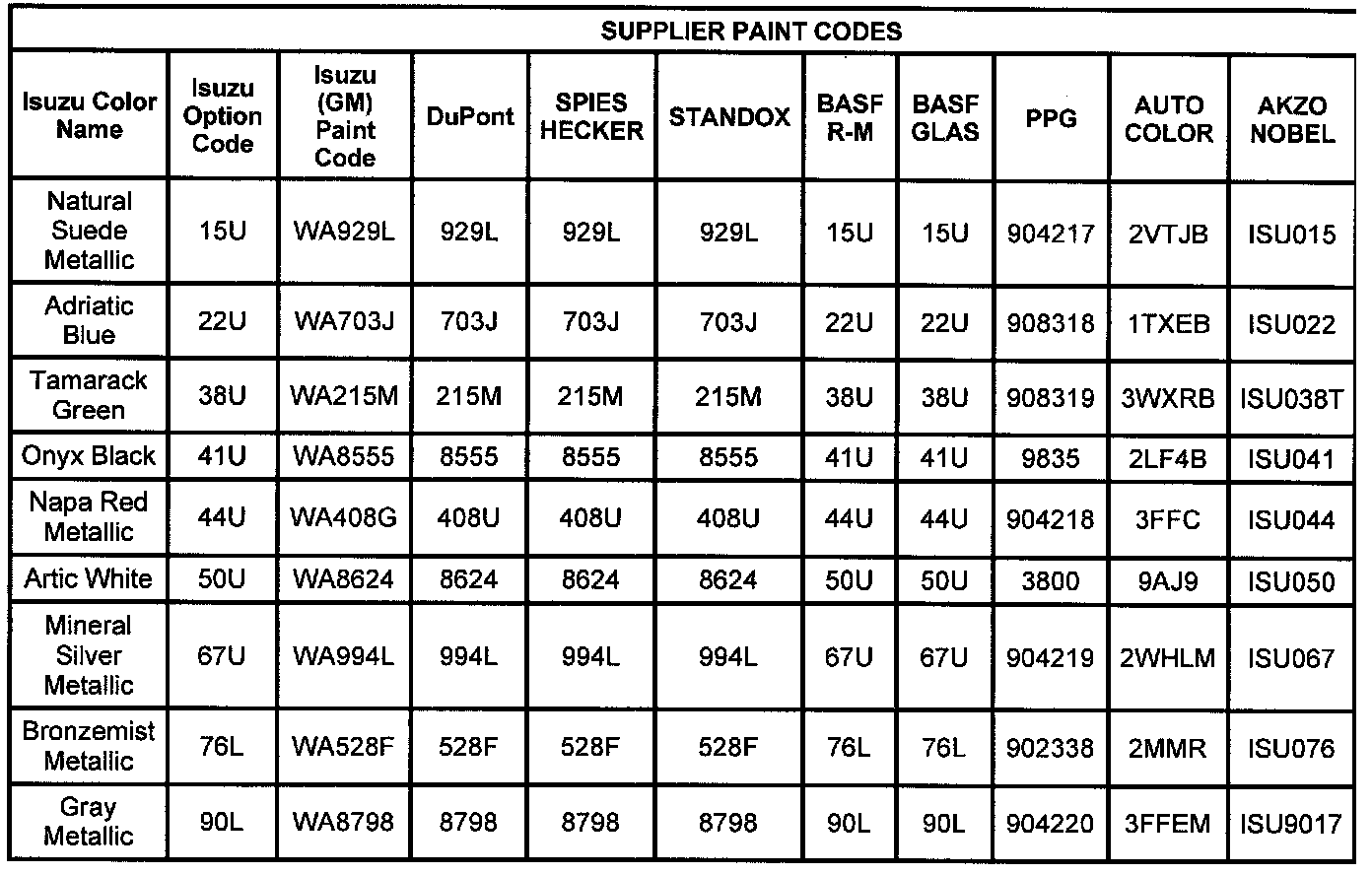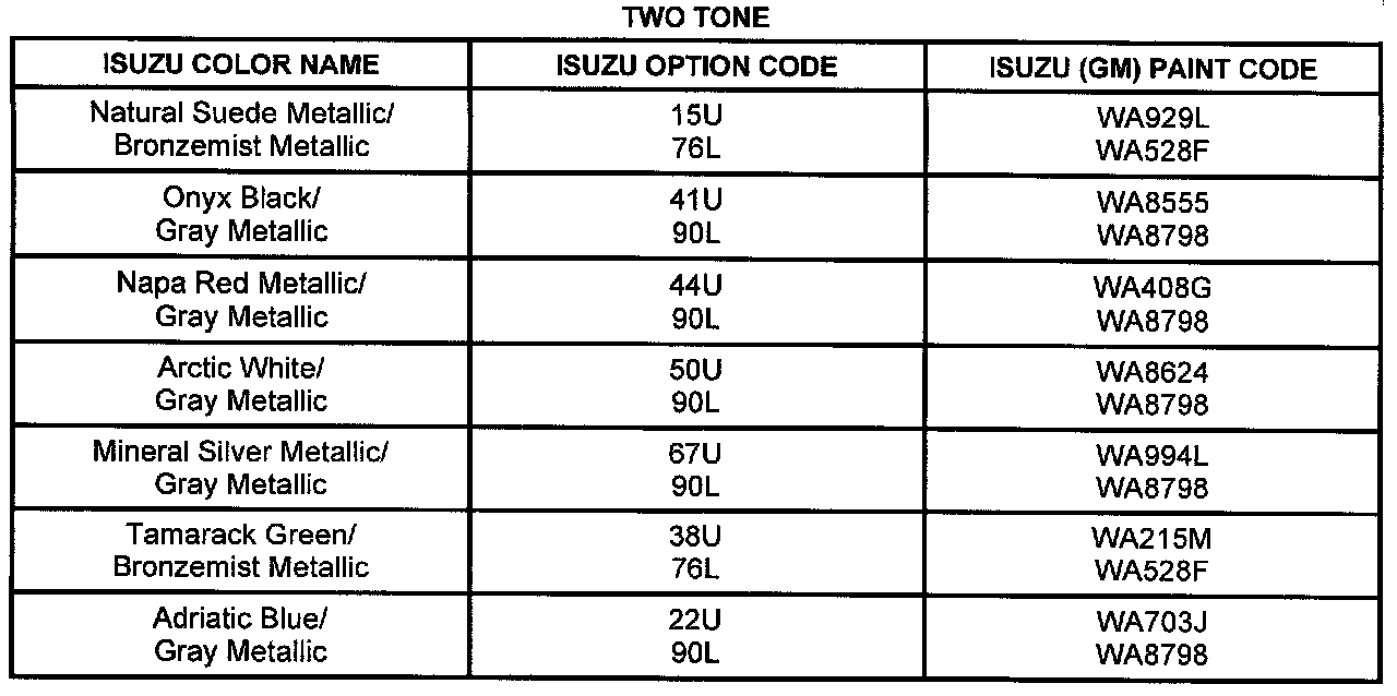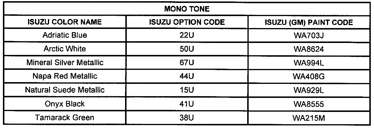The 3-digit Isuzu option code is printed on the Service ID information label inside glovebox.