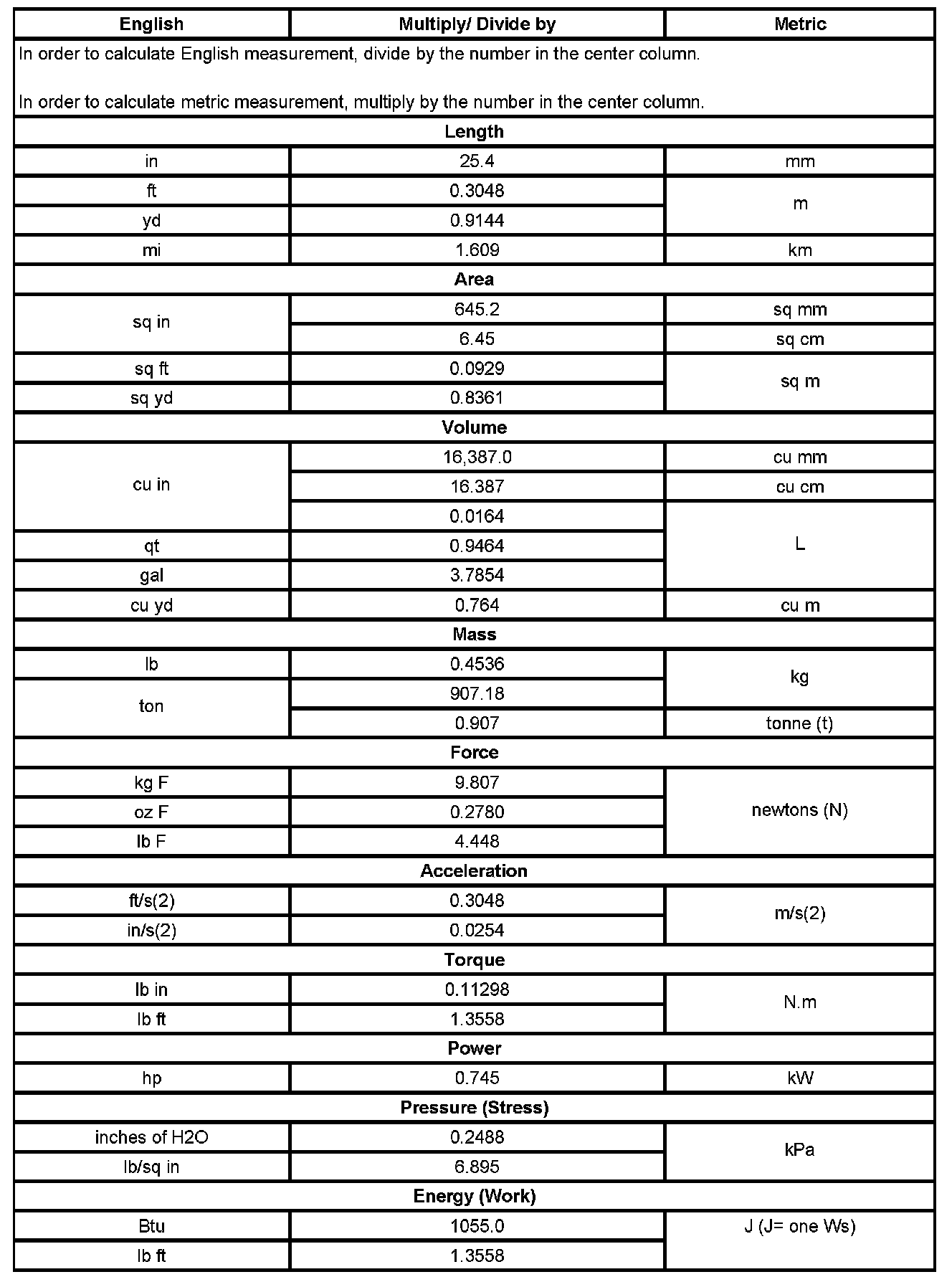 Conversion - English/Metric
