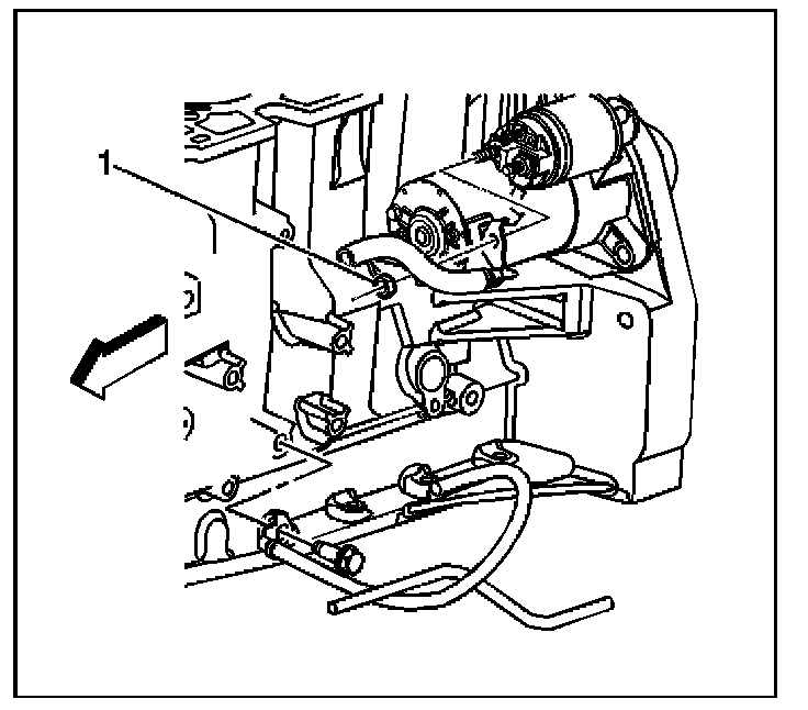 4. Disconnect the positive cable lead from the starter (1).