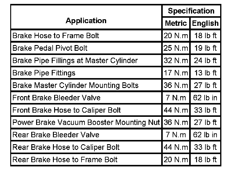 Fastener Tightening Specifications:
