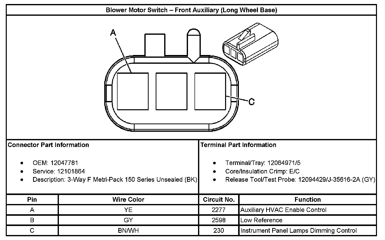 Blower Motor Switch - Front Auxiliary (Long Wheel Base):