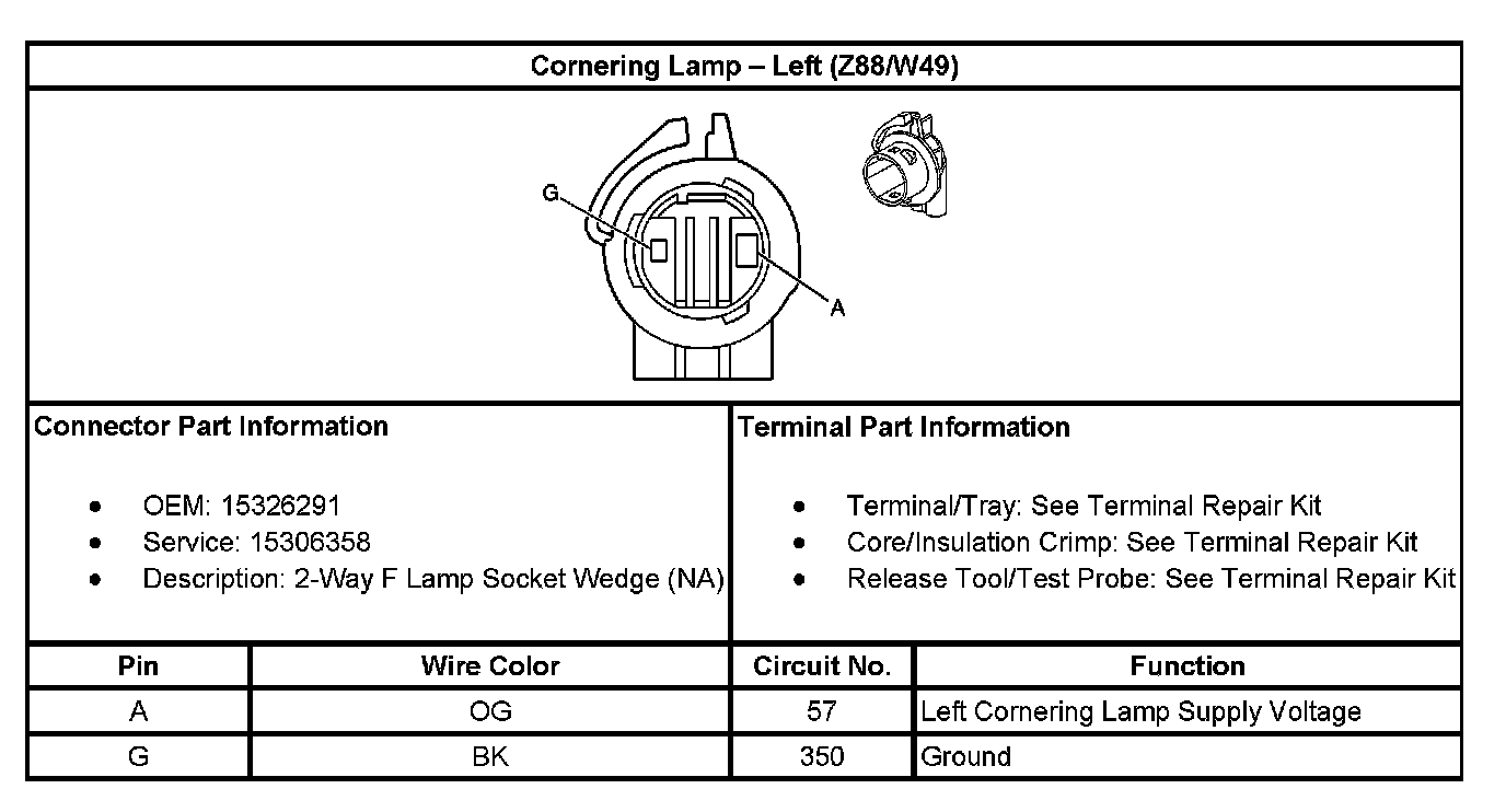 Cornering Lamp - Left (With RPO Code Z88/W49):