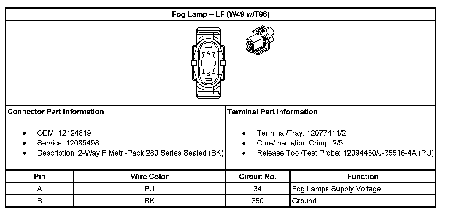 Fog Lamp - LF (With RPO Code W49 And T96):