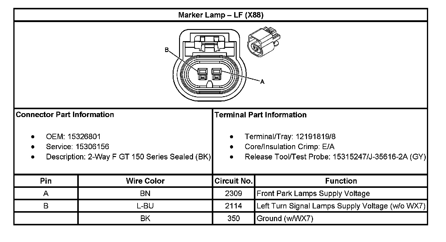 Marker Lamp - LF (With RPO Code X88):