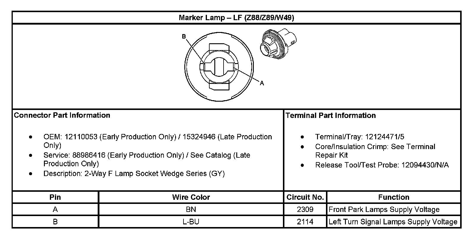 Marker Lamp - LF (With RPO Code Z88/Z89/W49):