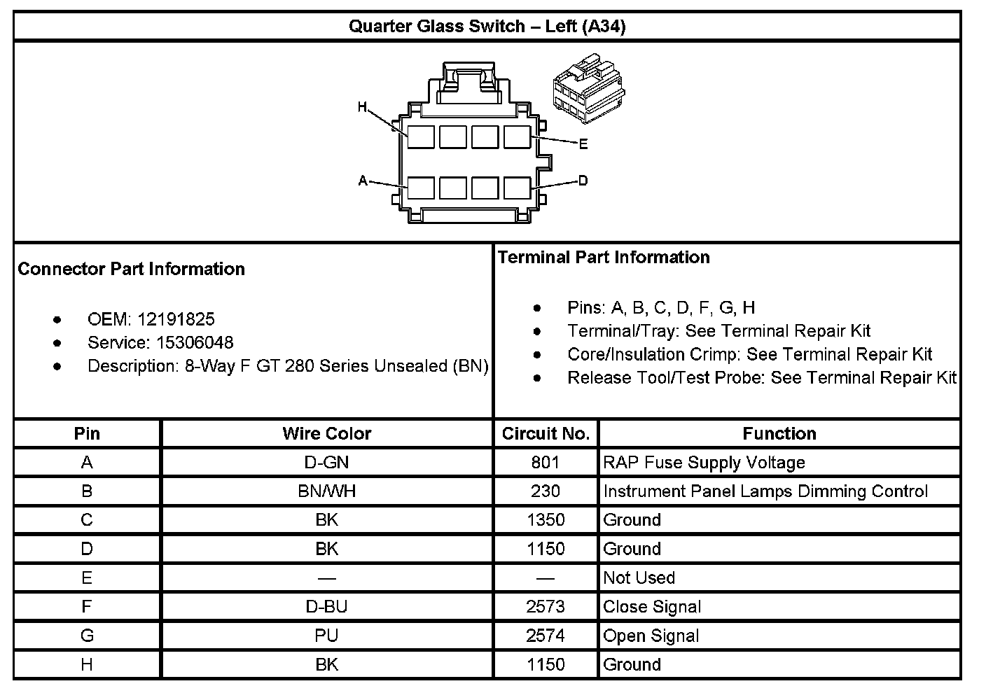 Quarter Glass Switch - Left (With RPO Code A34):