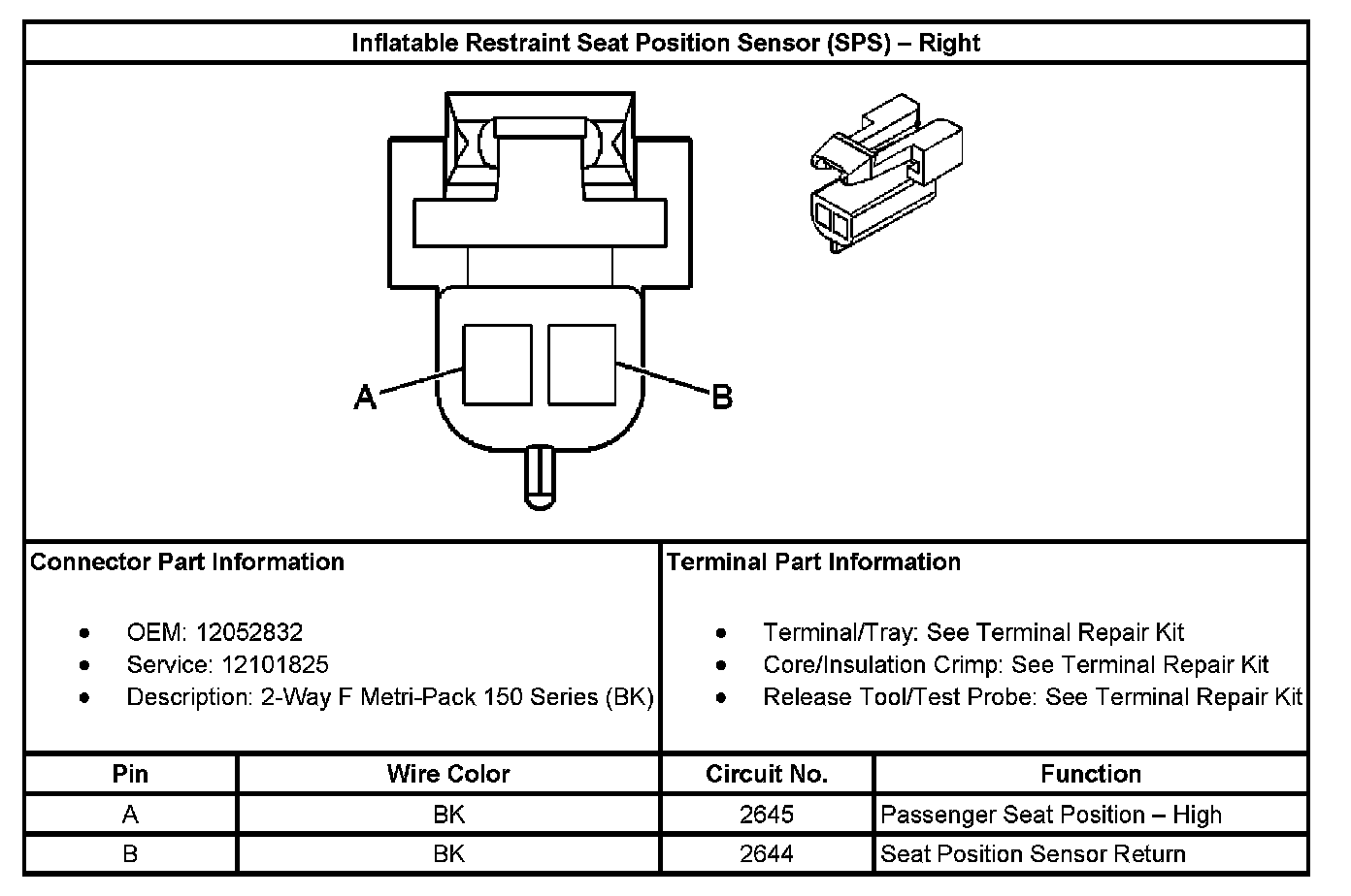 Inflatable Restraint Seat Position Sensor (SPS) - Right: