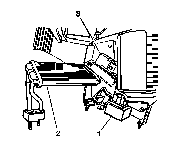 1. Install the heater core-auxiliary (2) to the HVAC module-auxiliary.
