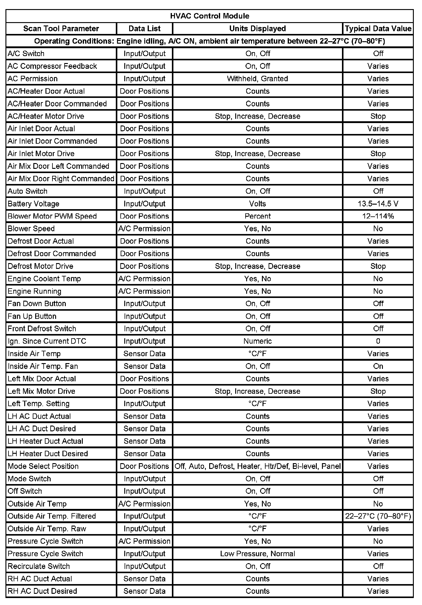 Scan Tool Data List