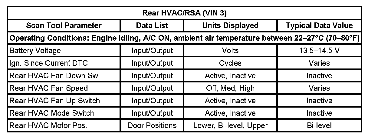 Rear HVAC/RSA (VIN 3):