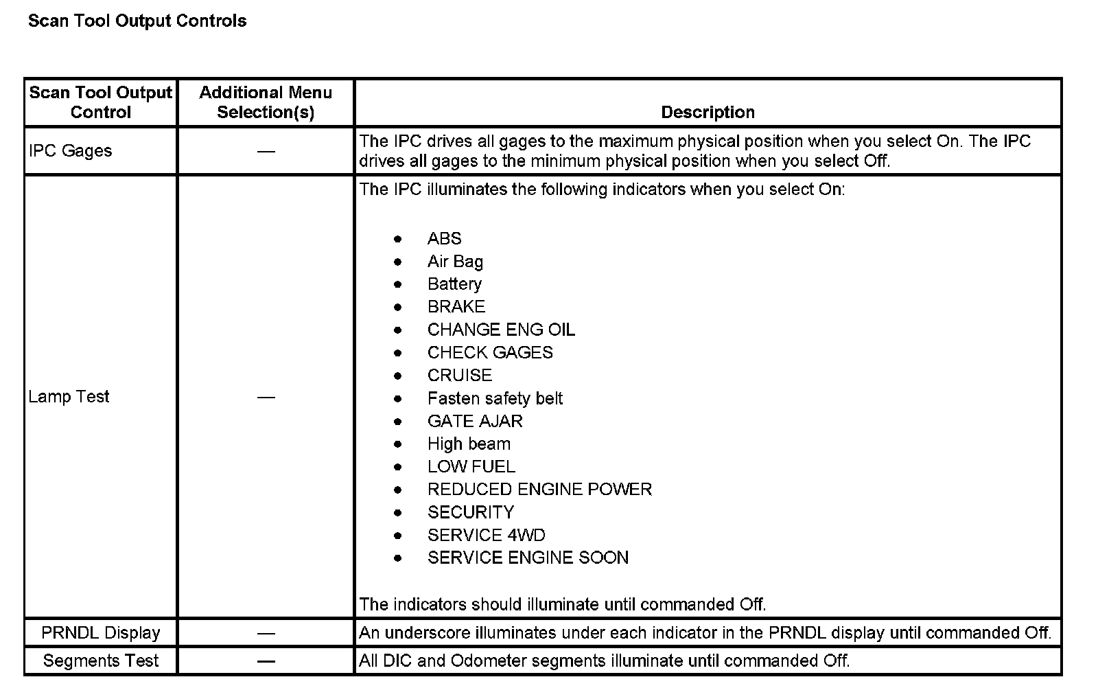 Scan Tool Output Controls: