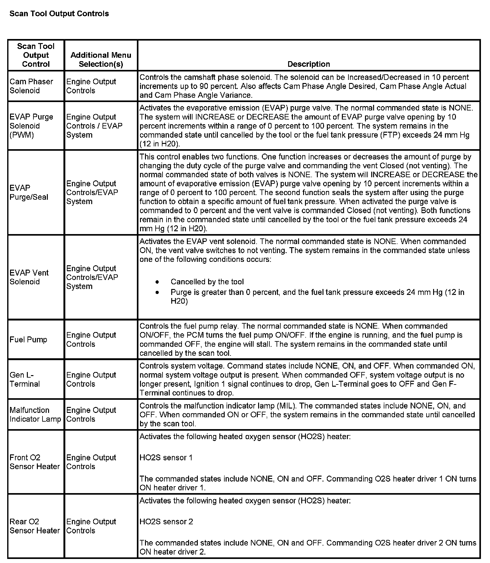 Scan Tool Output Controls:
