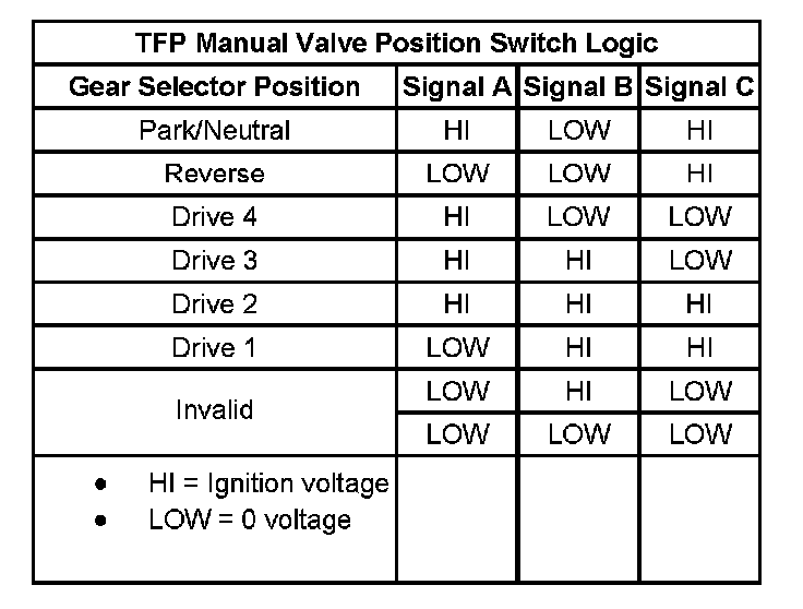 TFP Manual Valve Position Switch Logic:
