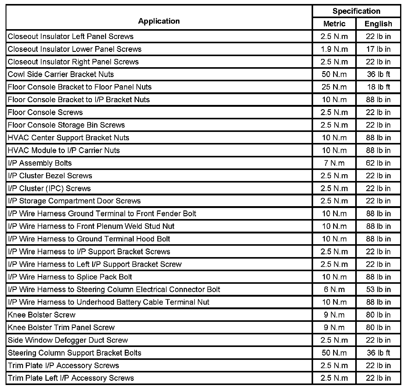 Fastener Tightening Specifications