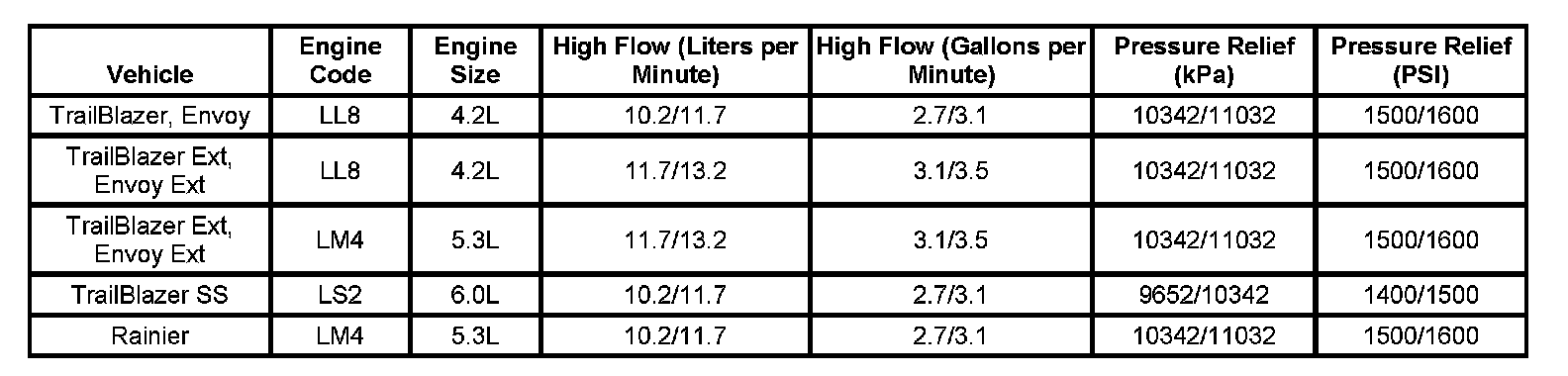 Power Steering Pump Specifications: