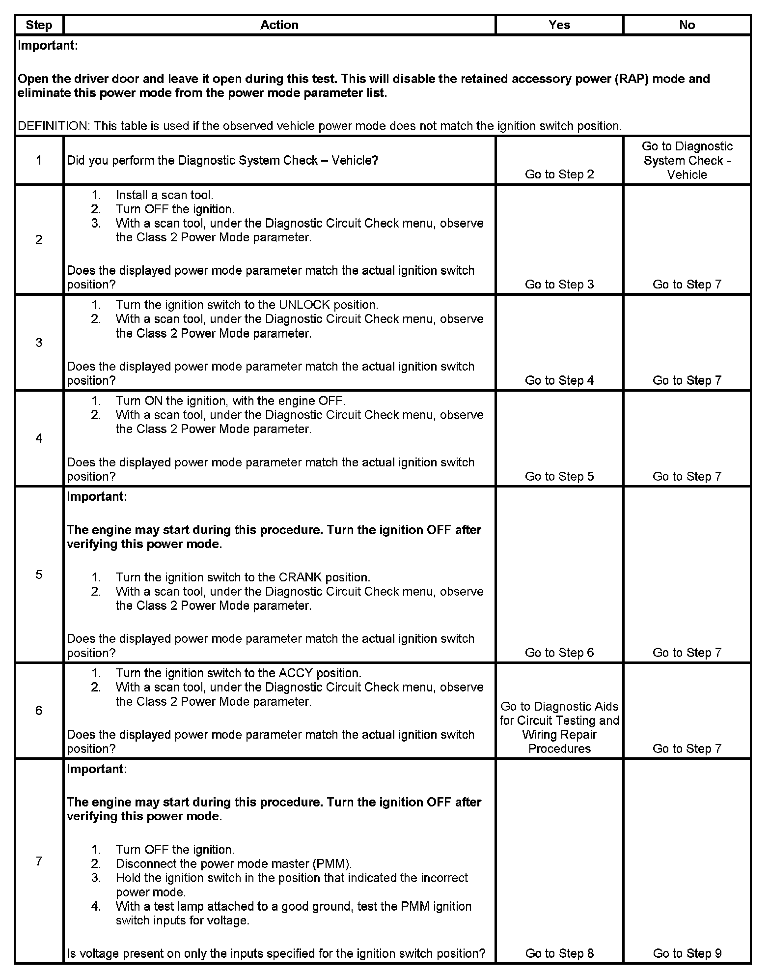 7. This step tests for battery voltage on the signal circuits that are not required.