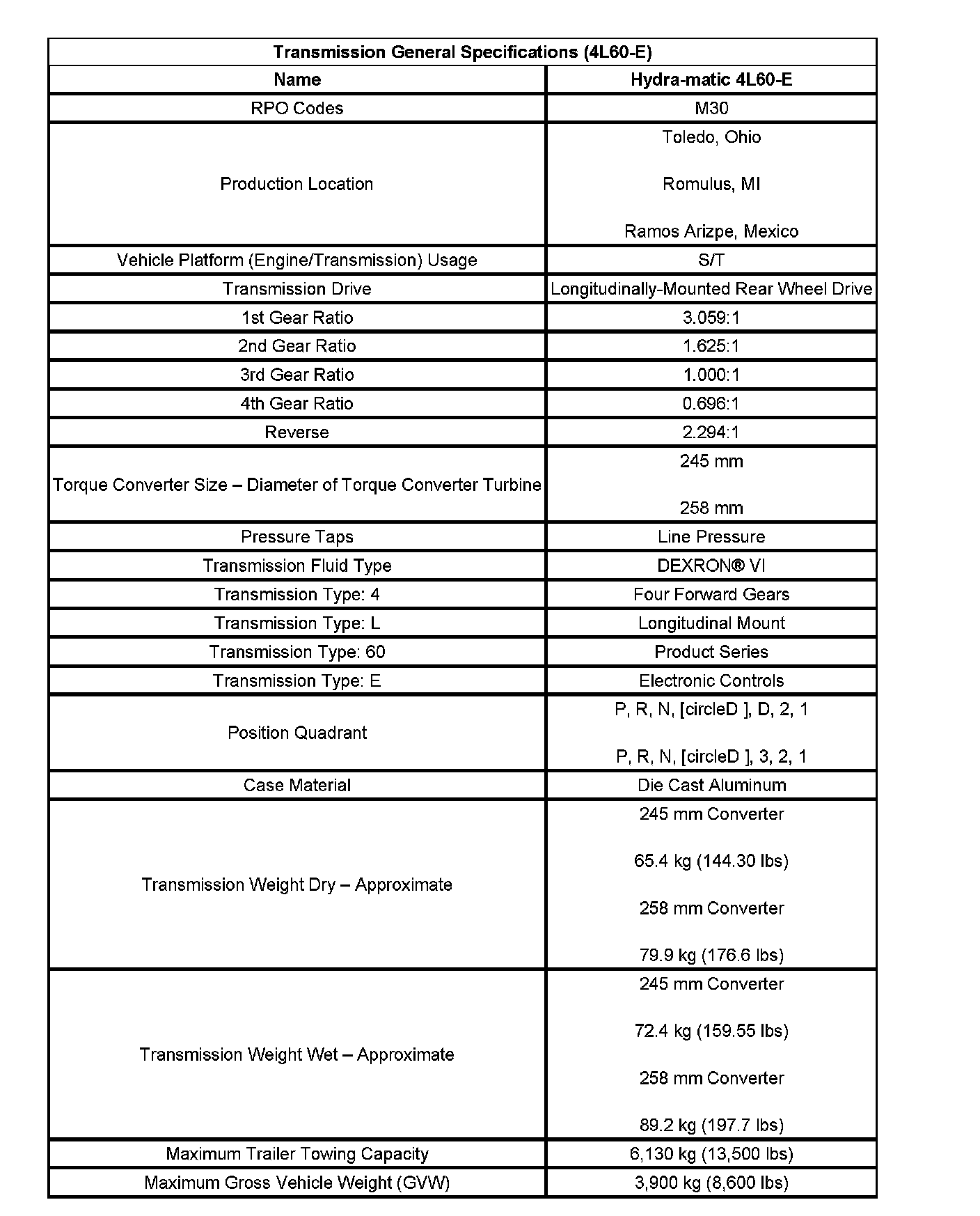 Transmission General Specifications (4L60-E):