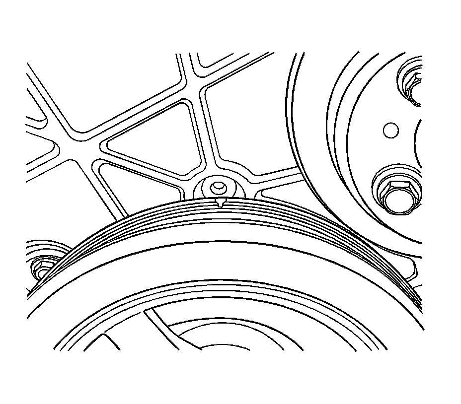19. Use a white paint pen or equivalent to place a reference mark on the harmonic balancer to the front cover for alignment purposes.